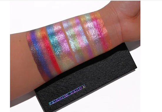 - Apply to the Face: Use the iridescent powder shades as highlighters on the cheekbones, brow bone, and other areas where you'd apply a highlighter. You can also use them as a blush for a pop of color.