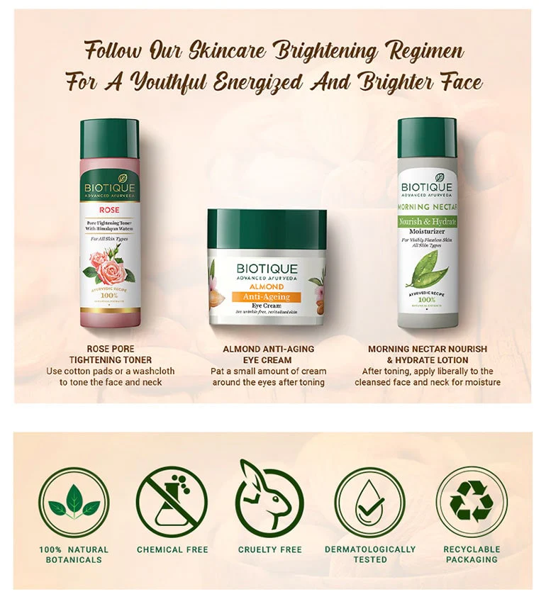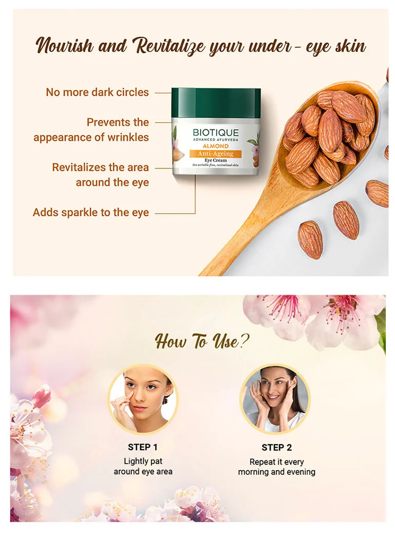 Biotique Anti-Ageing Eye Cream is an Ayurvedic blend of 100% botanical extracts. This eye cream works tirelessly to smooth away wrinkles, dry lines, dark circles, and puffiness, revitalizing your eye area and adding a touch of sparkle to your eyes.