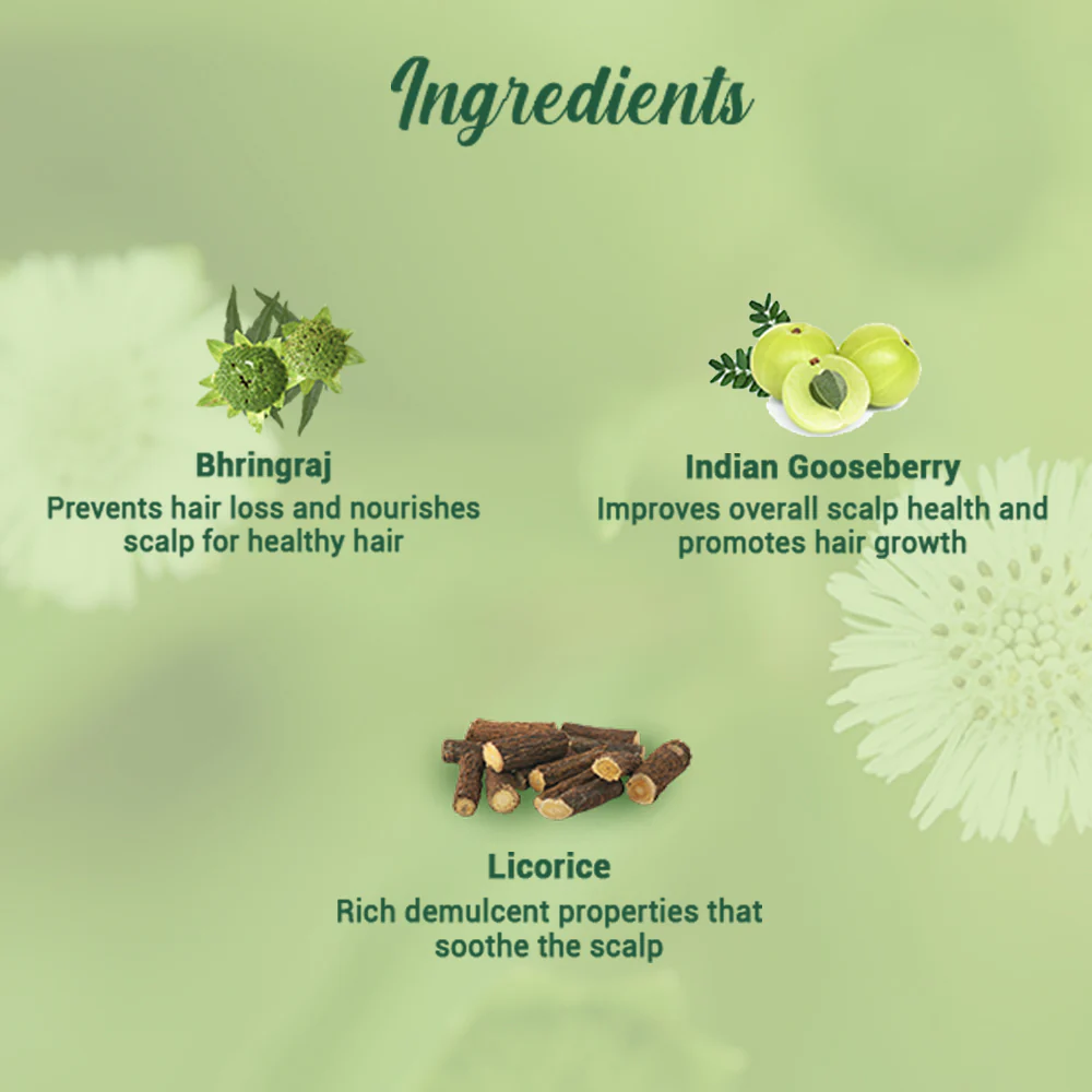 This intensive formula helps treat alopecia and other causes of hair loss. Encourages fresh growth and diminishes greying. Contains bhringraj, flame of the forest flower, licorice, cow milk, goat milk & Indian goosberry.