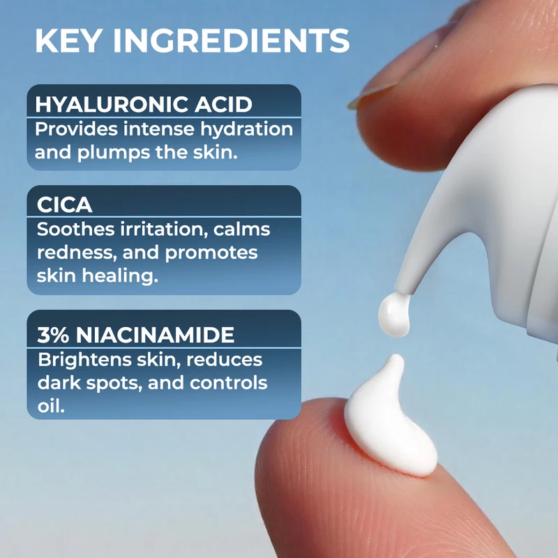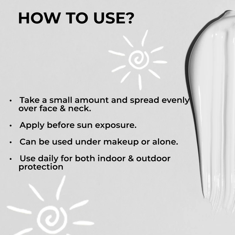 - Spread evenly: Dot the sunscreen over your face and neck and blend it in an even layer.