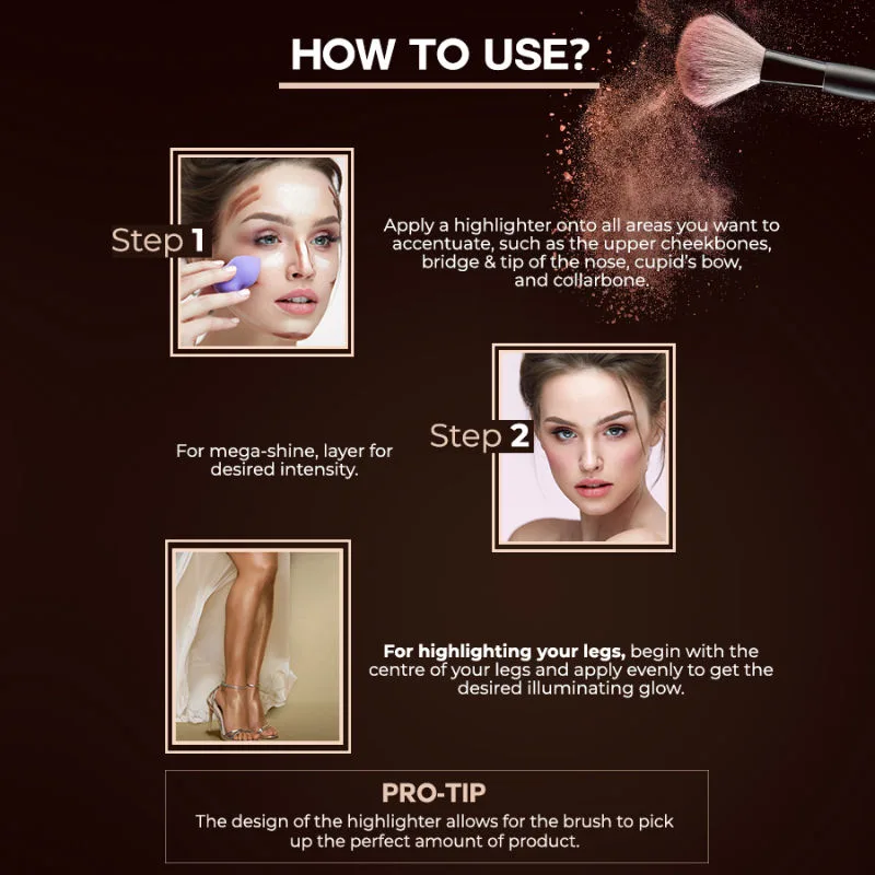 Pro-tip: Design of the highlighter allows the brush to pick up the perfect amount of product