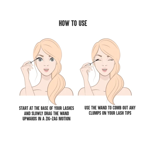 Apply Zoom and Whoosh to clean, dry lashes, starting from the base of upper lash line to the tips in an outwards motion. Repeat on the lower lashes.