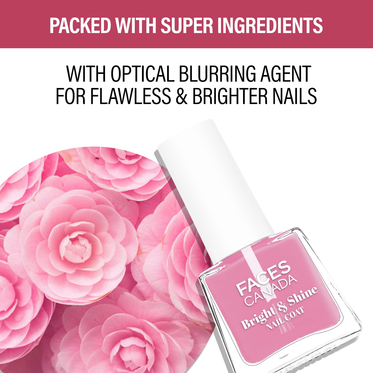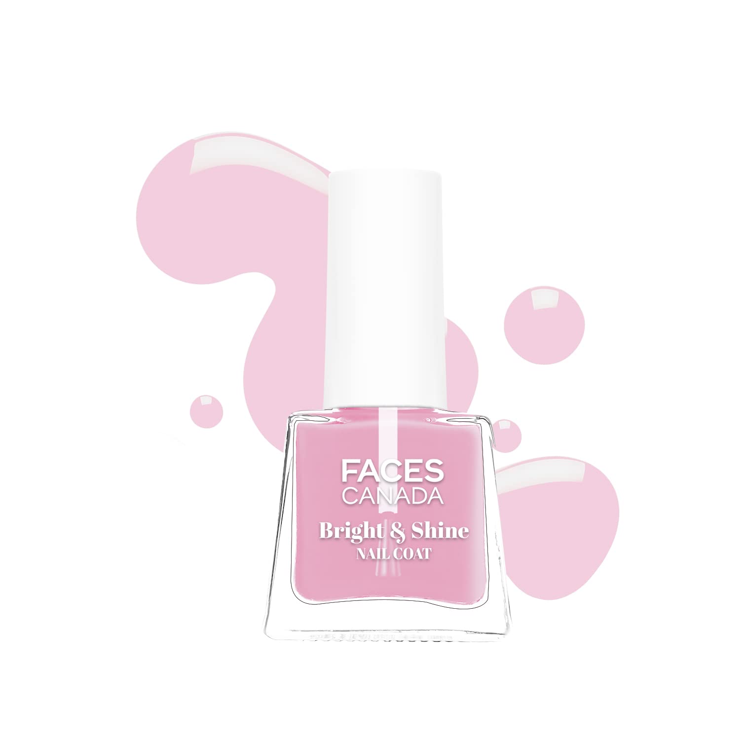 Apply one coat of FACES CANADA Bright & Shine Nail Coat before applying Nail Enamel. Apply another coat after applying Nail Enamel.