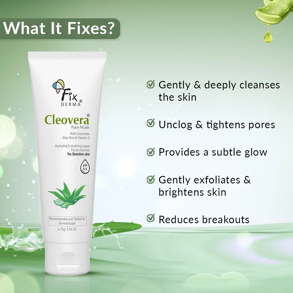 A blend of cucumber extract and aloe vera helps to clean the skin and tighten the pores, reduce breakout & having the high-water content keep the skin hydrated for a long time. Licorice extract has anti-inflammatory benefits and glycolic acid helps to exfoliate the dark skin cells. Thus, Cleovera and Cucumber facewash encouraging a radiant and natural glow.