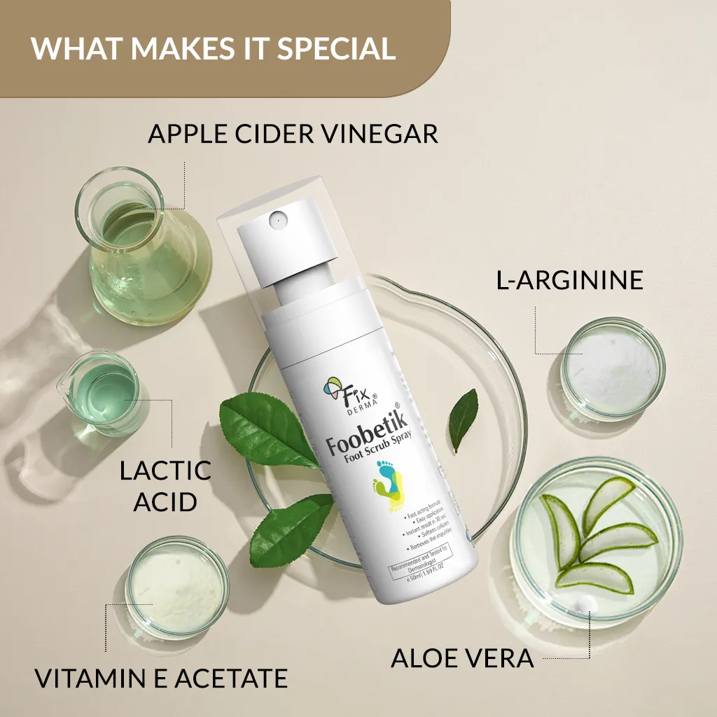 A revolutionary foot scrub in the form of a spray that instantly exfoliates and hydrates to revive your feet in just 30 seconds. This fast-acting formula effortlessly removes dead skin cells, softens calluses, and tackles dry, cracked heels while combating fungal growth. This foot scrub spray ensures an even coverage to exfoliate dry, tanned skin cells for smoother, softer feet. Its non-greasy formula gives you a spa-like foot care experience at home.
