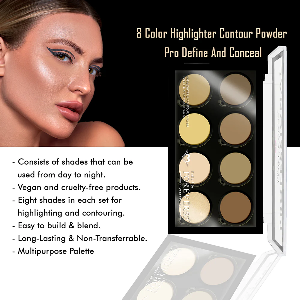 Apply the darkest shades below cheekbones, along your jawline, and to temples, then use the lighter shades to areas that light would naturally strike - cheekbones, brow bones, bridge of the nose, and cupid;s bow.