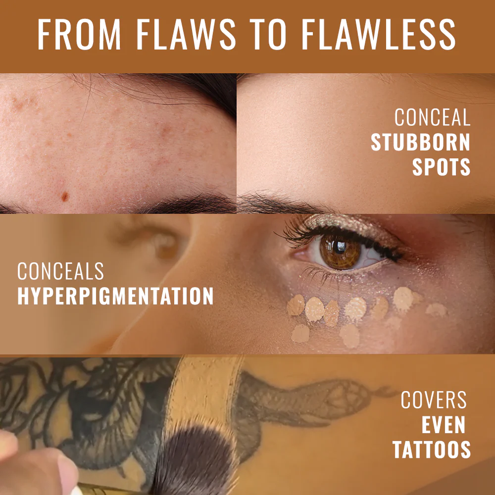 - All-Over Foundation: Blend a small amount into the skin using The Concealer Brush and The Foundation Brush.