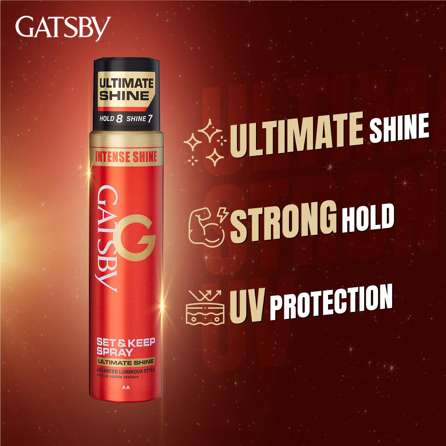 Elevate your hairstyling game with the Gatsby Set & Keep Spray Ultimate Shine, 250ml, your ultimate solution for flawless, long-lasting hairstyles. Designed with extra maximum setting power, this fine mist spray ensures even application, providing a secure hold that lasts all day without visible residue. Perfect for adding a radiant, glossy finish, it enhances your hair's natural shine while maintaining a soft, touchable feel, thanks to its non-sticky formula. The advanced fine mist technology ensures precise styling without clumping or weighing your hair down, while built-in UV protection shields your hair from harmful rays. Whether for weddings, parties, or everyday glam, this residue-free spray keeps your hair looking smooth, polished, and picture-perfect. Suitable for all hair types, it's the versatile essential your styling routine needs.