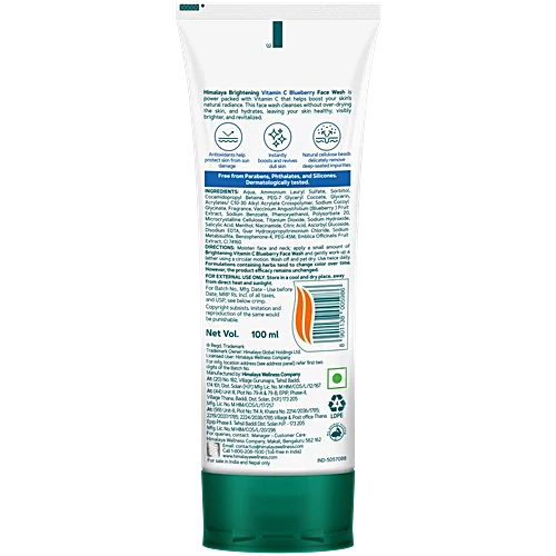 Moisten face and neck; apply a small amount of Brightening Vitamin C Blueberry Face Wash and gently work up a lather using a circular motion. Wash off and pat dry. Use twice daily. Formulations containing herbs tend to change colour over time. However, the product efficacy remains unchanged.
