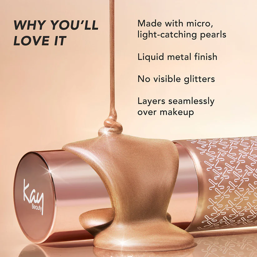 - Liquid metal finish- No visible glitters- Layers seamlessly over makeup