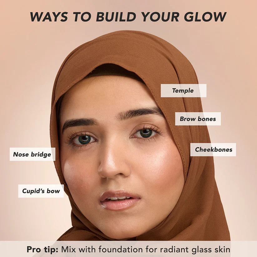 Step 1: Pump a small amount on your handStep 2: Apply on high points of your faceStep 3: Dab and blend using a brush or your fingertips