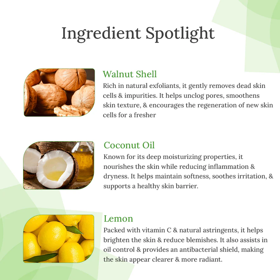 Deep Cleansing & Exfoliation:The antioxidant properties of lemon help brighten the complexion and reduce signs of aging, giving your skin a refreshed and revitalized look.