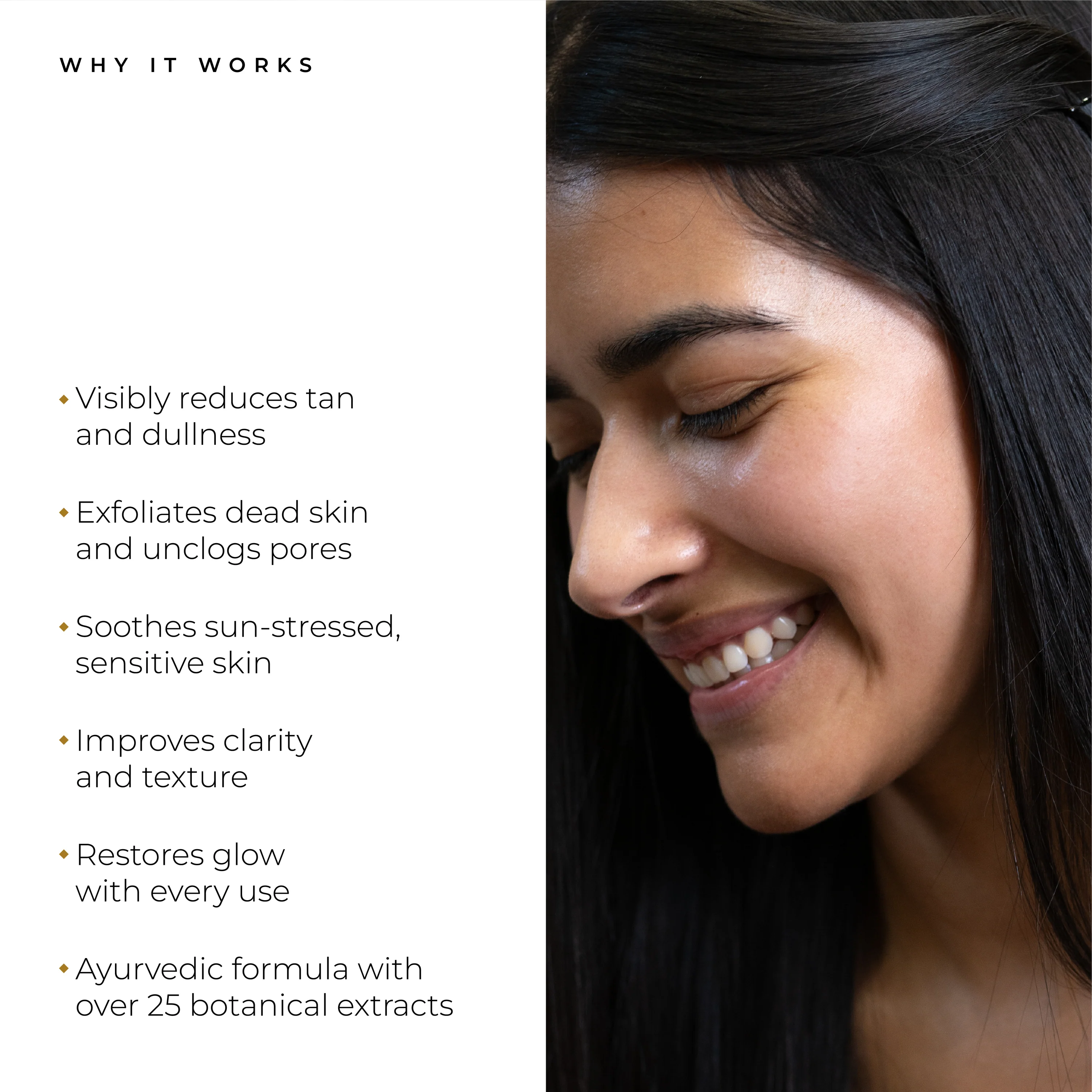 4. Massage & Rinse: Dampen hands and gently massage in circular motions for 1 - 2 minutes, then rinse or wipe off with a damp towel.