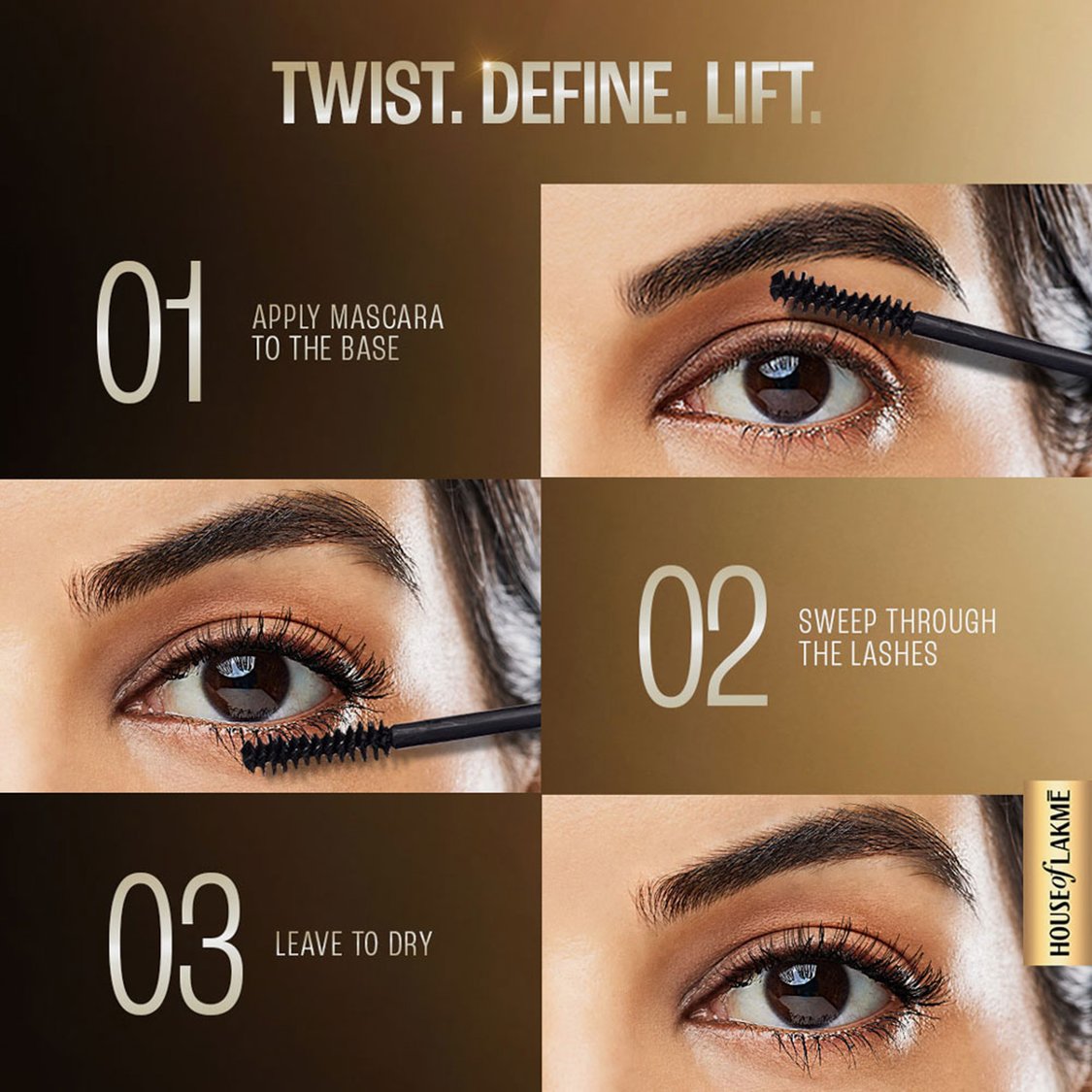 Uncap the lid, twist up and swipe it across your upper-lid and on your water line in one single stroke. This will give a voluminous, full-bodied look to your eyes.