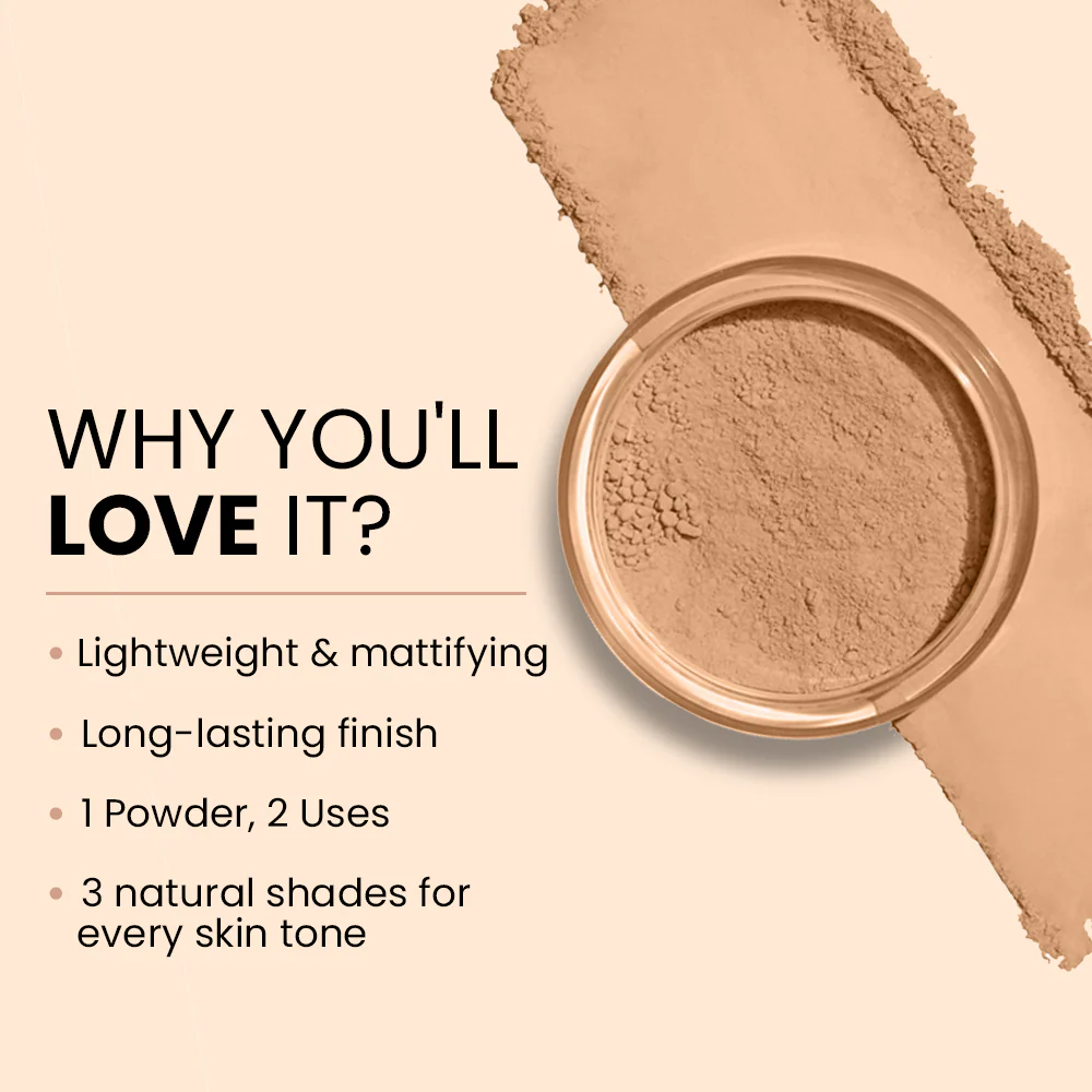 Open the protective lid and drop some of the powder, then dab the puff onto the powder, and gently tap it all over your face for medium coverage. Lastly, evenly blend the powder. Lo and behold! You're all set, with a natural glow and make up that will last till you clean it off.