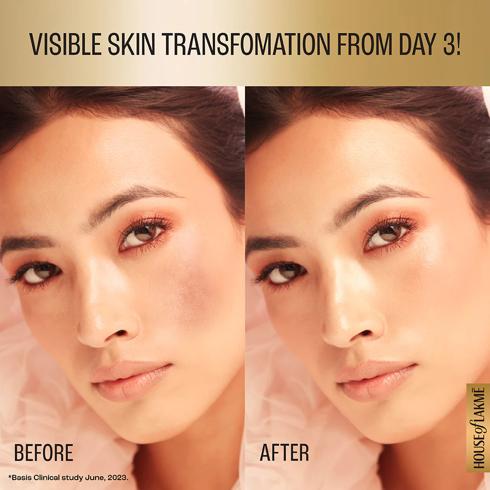 "Embrace the rising trend of natural, sheer skin with confidence as you bid farewell to pigmentation spots and imperfections, revealing a radiant and flawless Crystal-Sheer Skin from every angle. Elevate your skincare routine with the Lakme Perfect Radiance Regime, a powerful duo consisting of the Lakme Perfect Radiance Serum and Crème. The first step, the Lakme Perfect Radiance Serum, boasts a lightweight formula that effortlessly absorbs into your skin. What sets it apart is the 7% Niacinamide Complex, a potent ingredient known for its remarkable effects on the skin. Clinical evidence supports its effectiveness, demonstrating the ability to reduce the appearance of pigmentation spots as old as five years in just three days. Next, the Lakme Perfect Radiance Crème acts as the ideal complement to the serum. This rich and nourishing crème effectively locks in the benefits of the serum while providing continuous moisture throughout the day. Formulated with Niacinamide, it specifically targets pigmentation, helping to diminish its presence and restoring your skin's natural radiance. Backed by the approval of 98% of women who participated in the study, this powerful duo has been proven to enhance skin luminosity within a mere 14 days. Seize control of the crystal sheer skin trend with the Lakme Perfect Radiance Regime and witness the transformation of your complexion into a smooth, clear canvas that exudes a mesmerizing glow. For optimal results, incorporate the Lakme Perfect Radiance Range into both your morning and evening skincare routine. Embrace the beauty of sheer skin, free from imperfections, and revel in your newfound confidence."