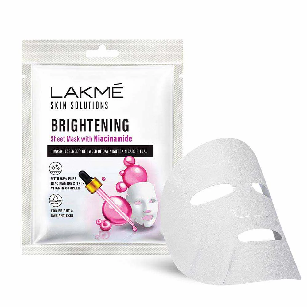 Lakmé Skin Solutions sheet masks offer various benefits depending on the specific product, including brightening, hydration, and revitalization. Key benefits include providing a glowing complexion in about 15 minutes, with options like the Brightening mask using Niacinamide to reduce dullness, the Hydrating mask with Hyaluronic Acid to boost moisture, and the Revitalizing mask using Vitamin C to energize the skin. They are suitable for all skin types and are serum-infused for effective nourishment.