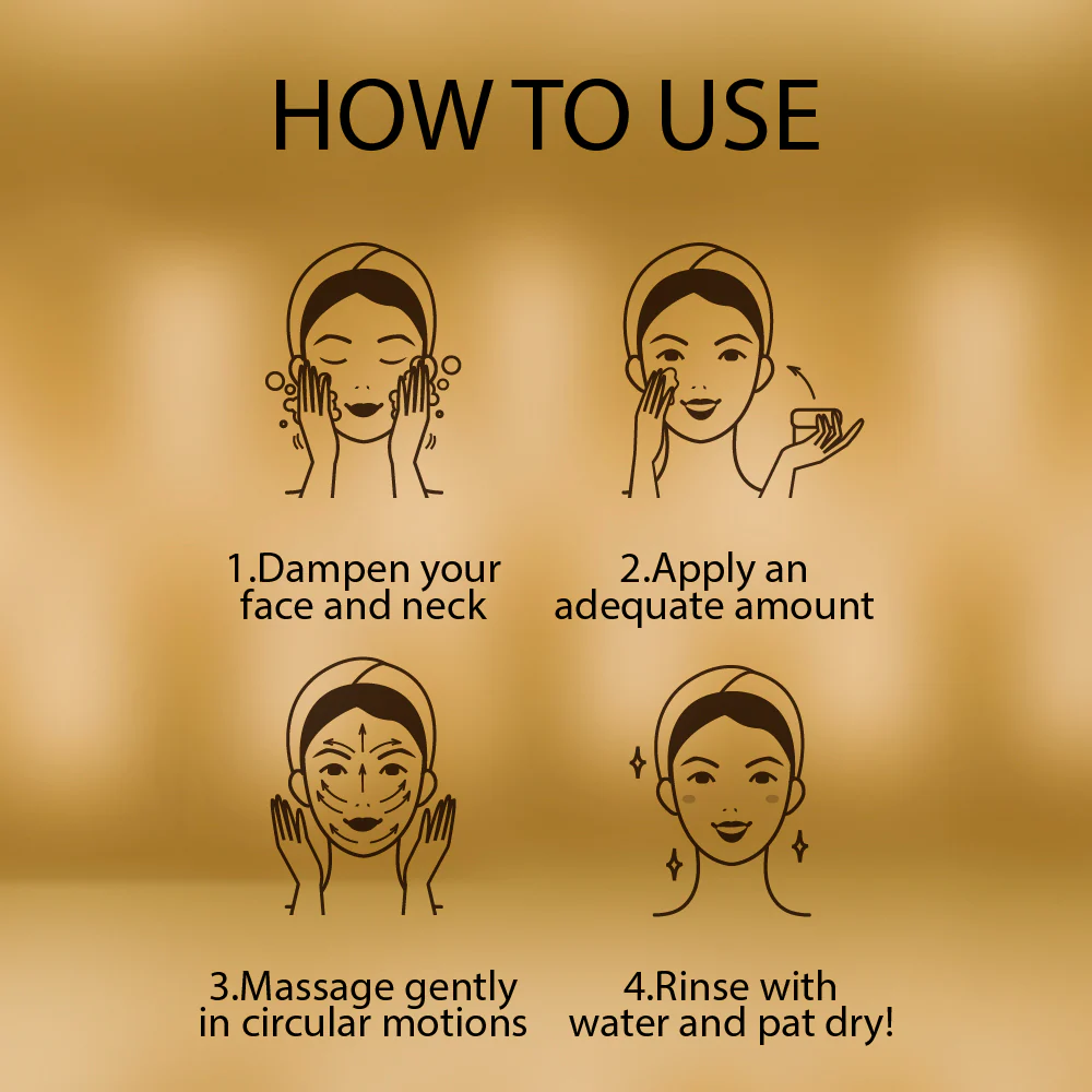 - Apply the scrub to your clean and wet face, avoiding the eye area.