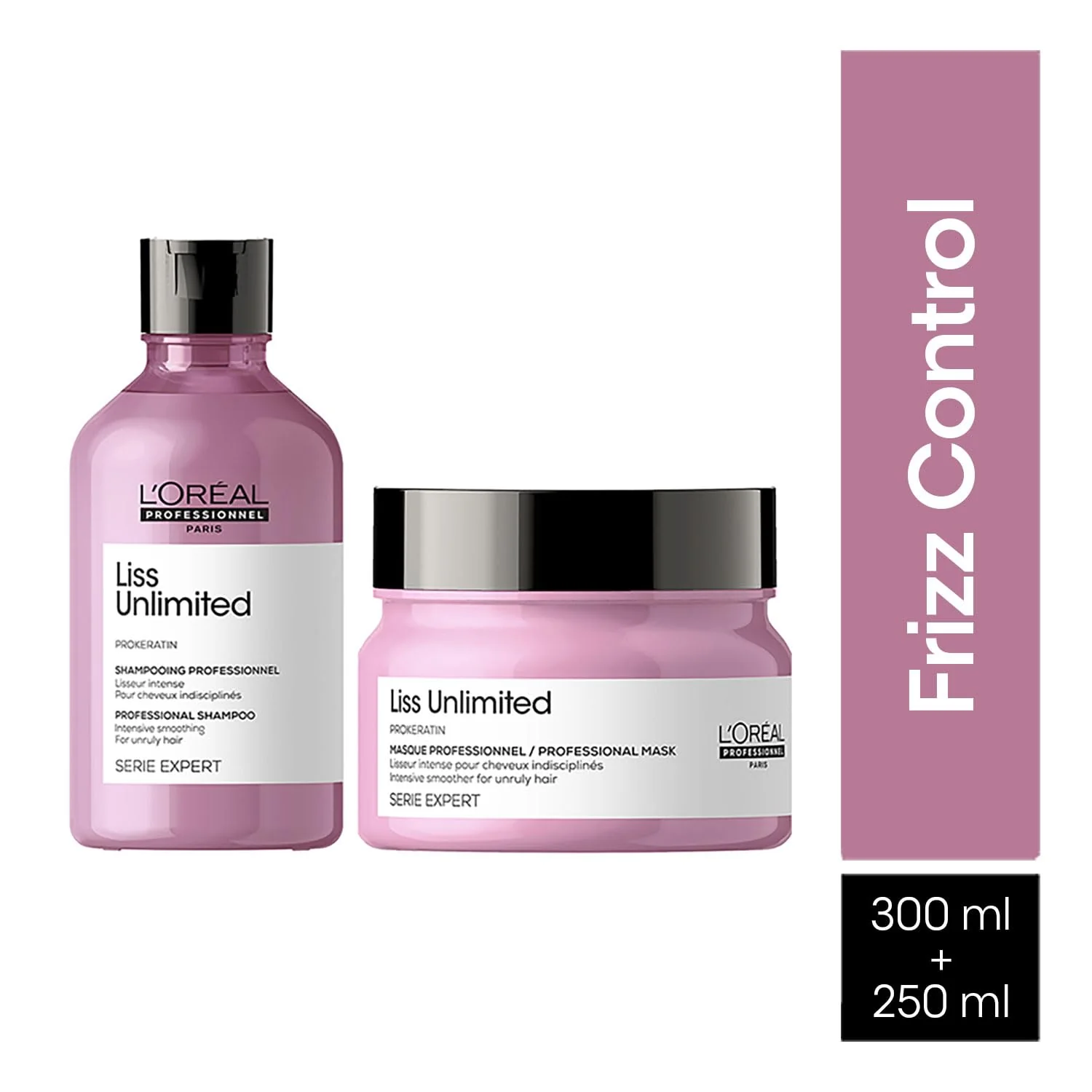 L'Oréal Professional Liss Unlimited Hair Care Combo (Shampoo, Mask, Oil) - 300ml, 125ml, 250ml