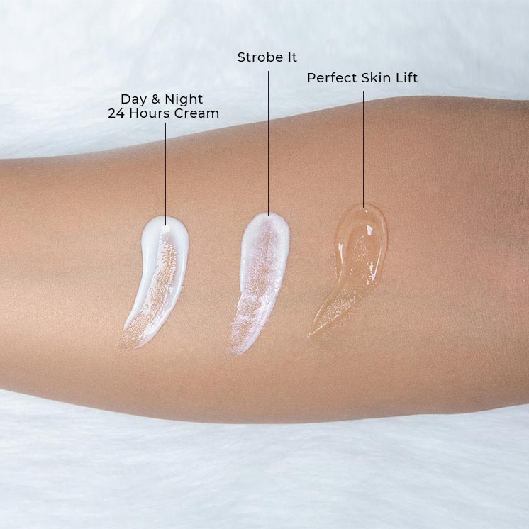 If you do not use foundation or just some powder, apply the Strobe-it Cream as a base. Spread it with a foundation brush or your fingertips. Do you want a foundation that is not completely matte? Then mix a little of the Strobe-it through the foundation. Your skin immediately looks healthy and nourished. Use the Strobe-it as a highlight, apply the strobe-it cream above your cheek, on your Cupid's bow, on your nose bridge and just below your eyebrow. Tip: Great for letting dry skin shine.