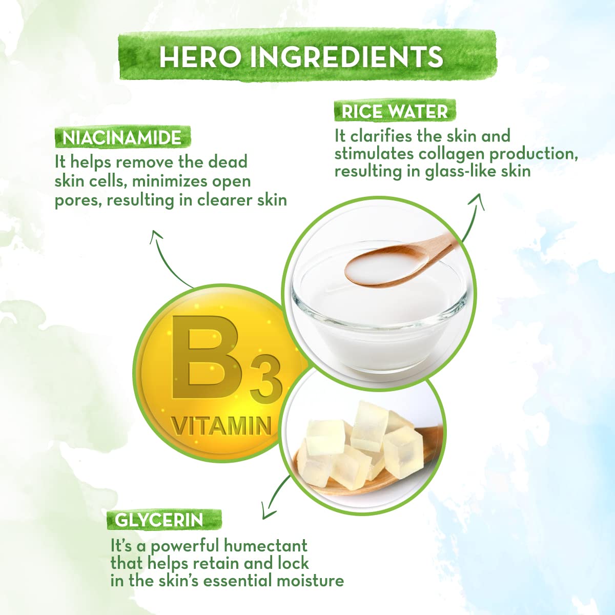 The road to clear and healthy glass skin seems like a bumpy one, right? Clogged pores and uneven texture can make your skin appear dull. But not anymore! Achieve luminous glass-like skin with our - Rice Face Scrub. Crafted with the goodness of Rice Water & Niacinamide, the face scrub has a unique gel-like texture that's cooling on the skin as it gently exfoliates, cleanses & nourishes the skin. Rice Water in the scrub clarifies the skin, controls oil production & also boosts collagen. The gentle Rice Beads get rid of dead skin cells while absorbing excess oil. Niacinamide in the scrub helps minimize open pores and evens the skin texture giving you smoother and radiant glass-like skin! And it's also Made Safe certified which means it contains no toxins or harmful chemicals, just the goodness of natu