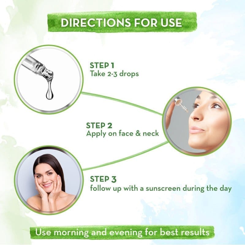 - Use the pipette glass dropper to apply the serum directly on the face, twice a day.