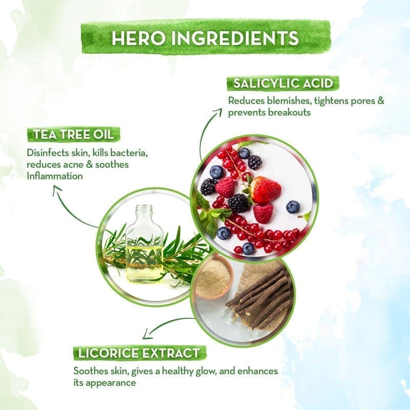 - Enriched with tea tree oil, salicylic acid and licorice extract