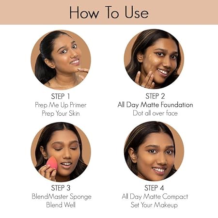 - Apply Foundation: Dot the Nykaa All Day Matte foundation on your face.