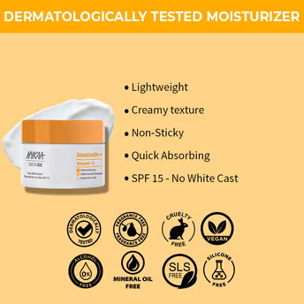 Brightening: Vitamin C works to reduce pigmentation and dark spots, leaving skin looking radiant and youthful. Sun Protection: SPF 15 shields your skin from harmful UV rays, reducing the risk of sun damage. Hydration: The lightweight formula provides long-lasting moisture without feeling greasy or heavy.