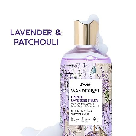 - Dispense: a small amount of the Nykaa Wanderlust French Lavender Shower Gel onto your loofah or directly into your palm.