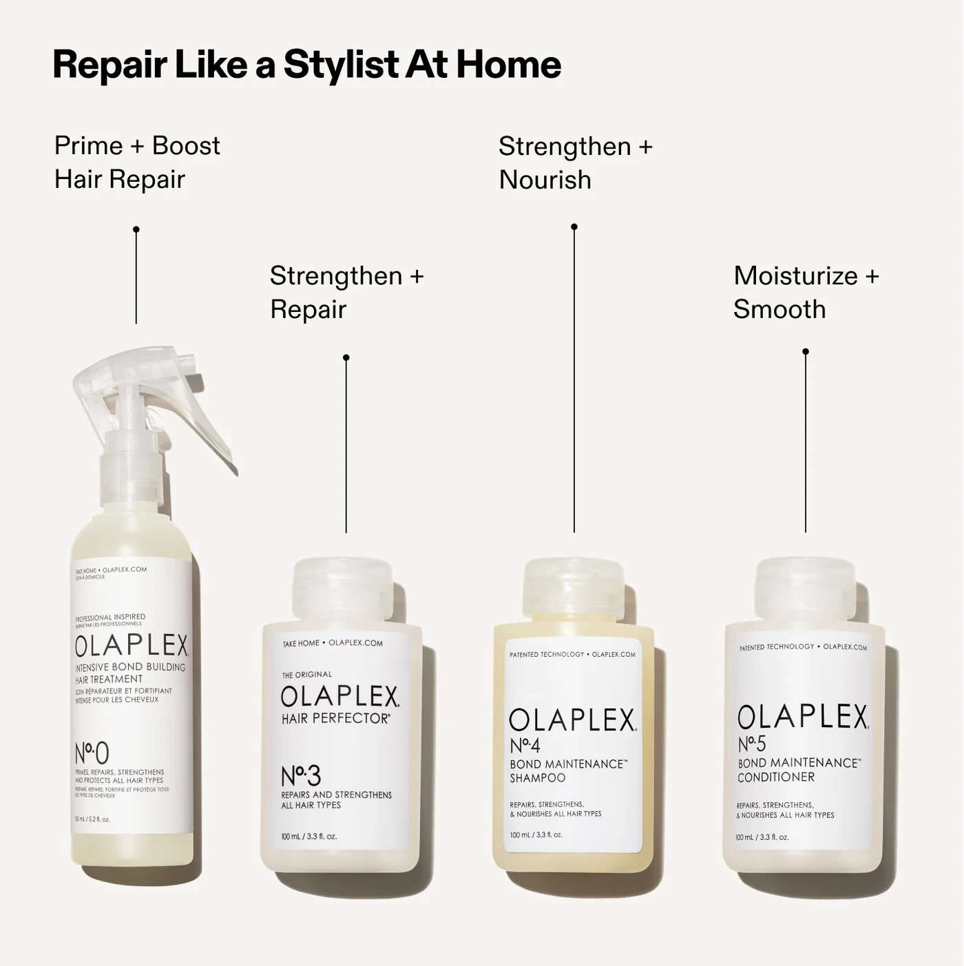 Step 2: After saturating hair with Nº.0 INTENSIVE BOND BUILDING HAIR TREATMENT, apply Nº.3 HAIR PERFECTORTM from roots to ends and leave on for up to 10 minutes. Use 1-3 times per week.