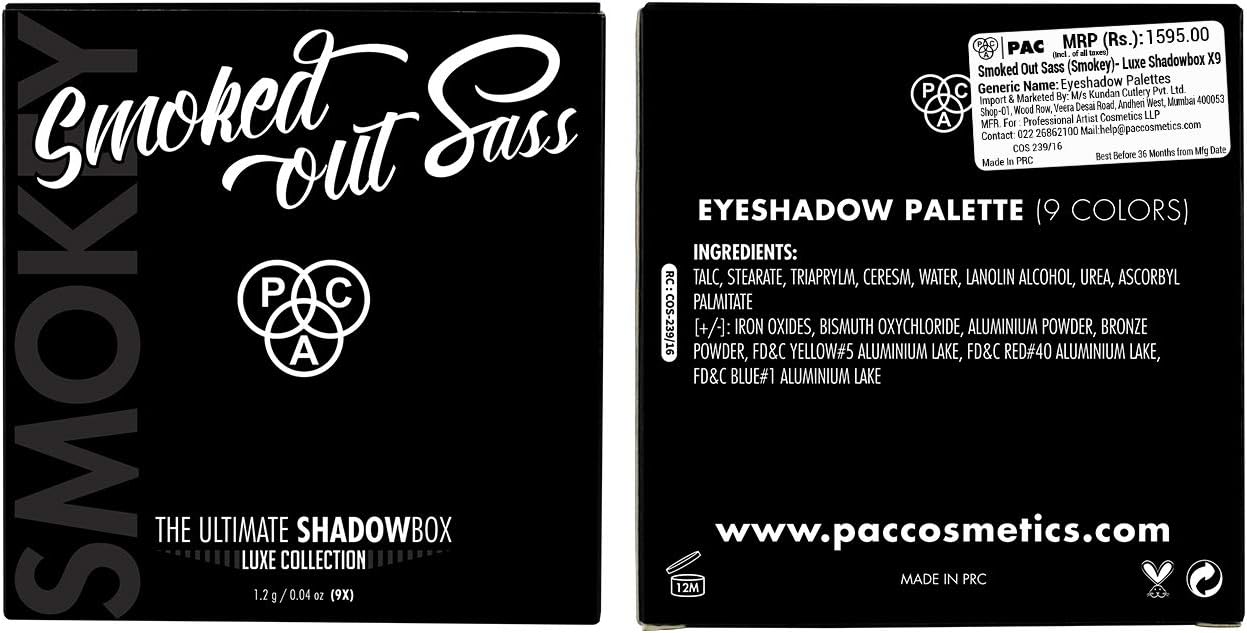 The key benefits of the PAC Luxe Shadowbox X9 in Smoked Out Sass are its blendable, pigmented eyeshadows in various finishes (matte, metallic, foil, iridescent) that deliver high color payoff for both subtle and bold smoky eye looks. The shadows are creamy and smooth, making them easy to apply and blend for a long-lasting finish.