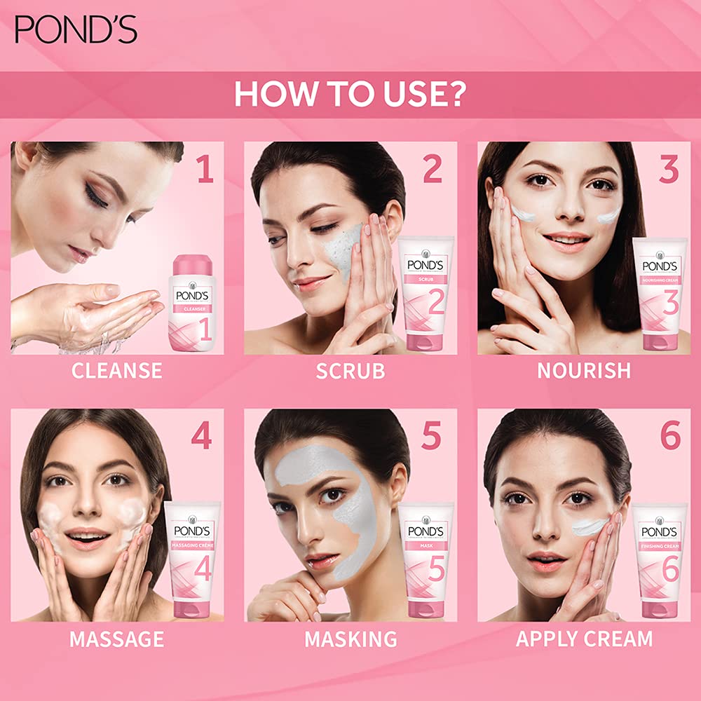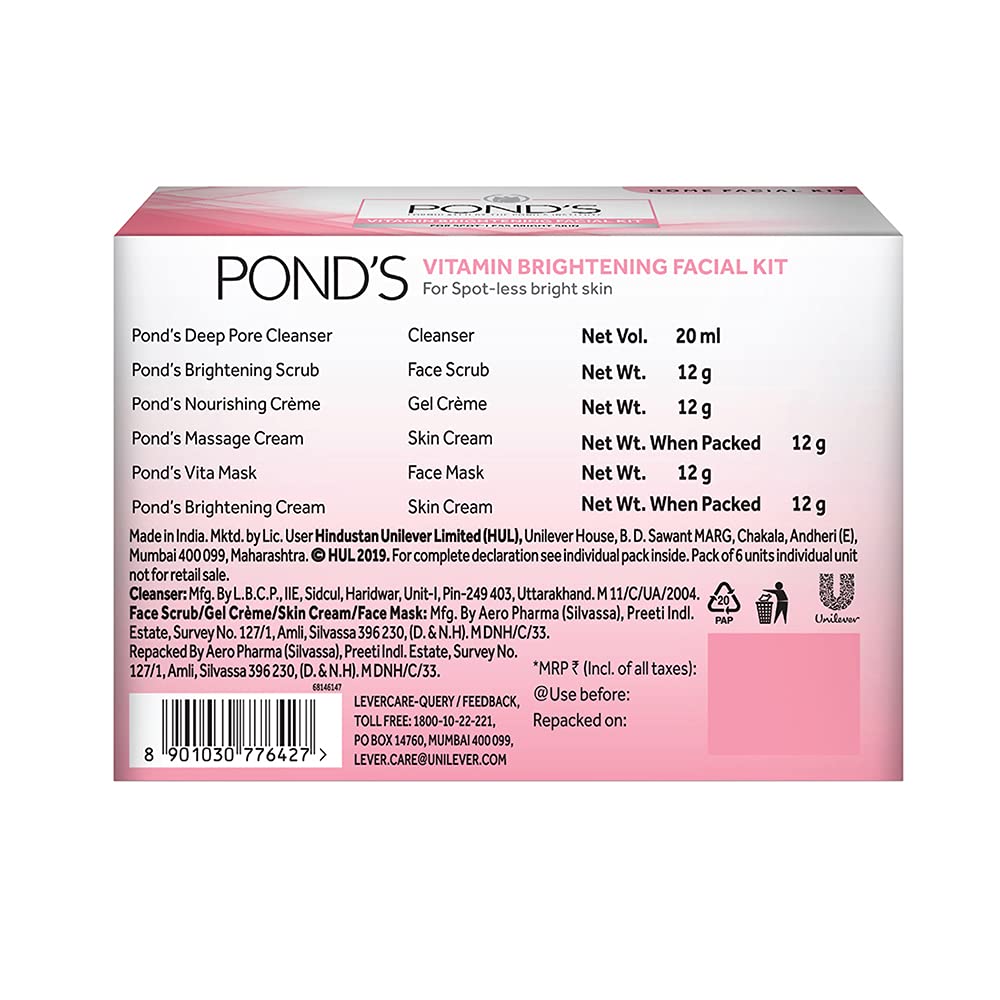 Follow Six easy steps Step 1: Massage the Deep pore cleanser in small circular strokes for 2-3 minutes & wipe off Step 2: Take a coin size Brightening Scrub in circular motion for 5-7 minutes. Step 3: Apply nourishing cream gently & spread till it gets absorbed. Step 4: Apply the massage cream on your face & neck in light circular upward strokes for 10-15 minutes. Step 5: Apply the Vita mask in a thin even layer Keep it for 10-15 minutes & rinse off Step 6: Finish by applying Brightening cream all over your face and neck
