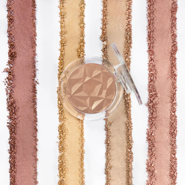 - 02Glide the pressed powder on targeted areas of your face such as your cheekbones, brow bones, down the bridge of your nose, cupid's bow, and collar bone for the perfect highlighter application.