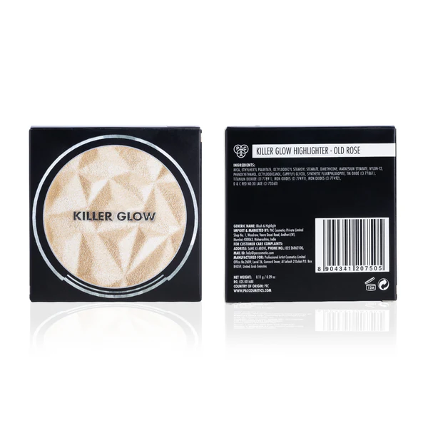 - Use a highlighter brush or fingers to pick up the Killer Glow Highlighter from the palette.