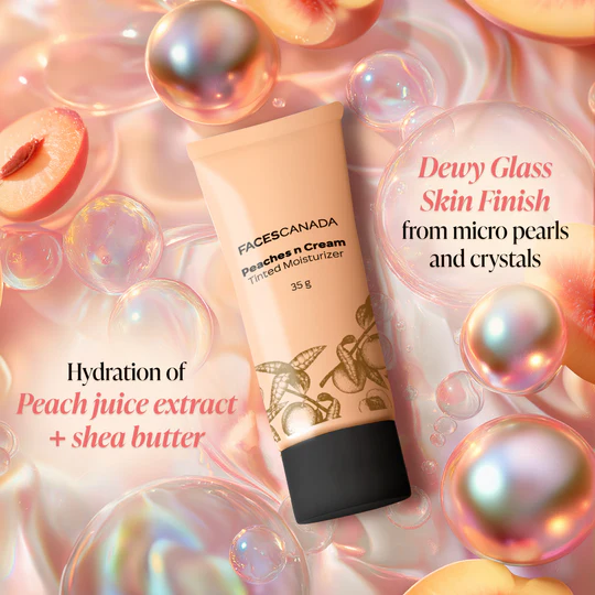 Bring out the best in your complexion with Faces Canada Peaches and Cream Tinted Moisturizer. This tinted gel moisturizer with a lightweight finish gives you a peachy, natural glow. Its soft milk-like texture easily spreads through your face and gives your skin an instant glow. Features: A tinted face moisturiser that embraces you skin with a natural glow The pleasant peach fragrance adds freshness to the face Loaded with micro shimmers that give a 'Lit-from-within' look has a very lightweight formula, ideal for regular use and does not feel heavy on the skin perfectly hydrates and moisturizes your skin and is best suited for all weather types Enhances your complexion by giving your skin a hint of fresh peach colour leaving you with a glow This fabulous product comes in an easy to use attractive and compact tube packaging Formulated in Sweden Shade Description: Light Shade: Light shade for fair skin people with pale or yellow skin tone Medium Shade: Medium shade for wheatish skin with neutral or pink or red skin tone (cool and neutral)