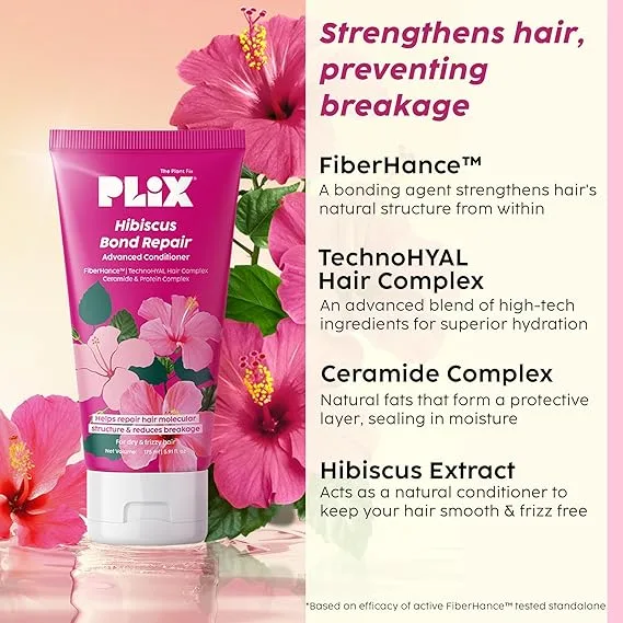 - Wash and rinse: First, wash your hair with Plix Hibiscus Bond Repair Advanced Shampoo (or your preferred shampoo) and rinse thoroughly.