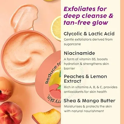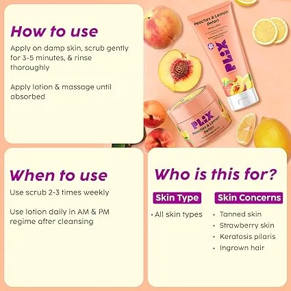 - Enhanced Skin Radiance: Peaches & Lemon Extract, rich in Vitamin C, reduce pigmentation and uneven skin tone, leaving skin brighter and more radiant.