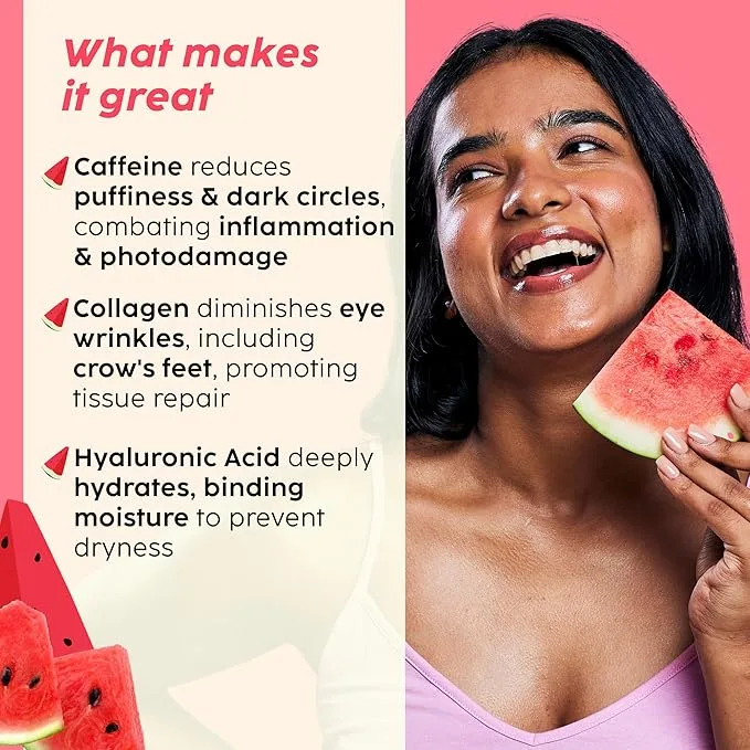 - De-puffs & refreshes: The easy-to-use eye patches contain Caffeine & Watermelon extract that help tackles dark circles & de-puffs them, leaving your eyes refreshed.