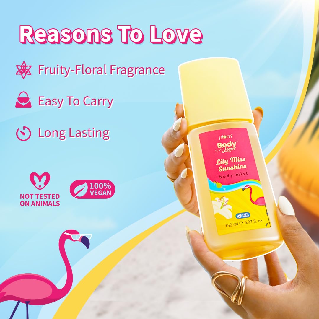 Plum BodyLovin' Lily Miss Sunshine Body Mist offers a fresh, uplifting floral-fruity scent with notes of lily, pear, and bergamot, providing long-lasting freshness (3+ hours) that instantly refreshes, is non-sticky, vegan, cruelty-free, and features travel-friendly packaging, making it great for daily use and on-the-go refreshing.