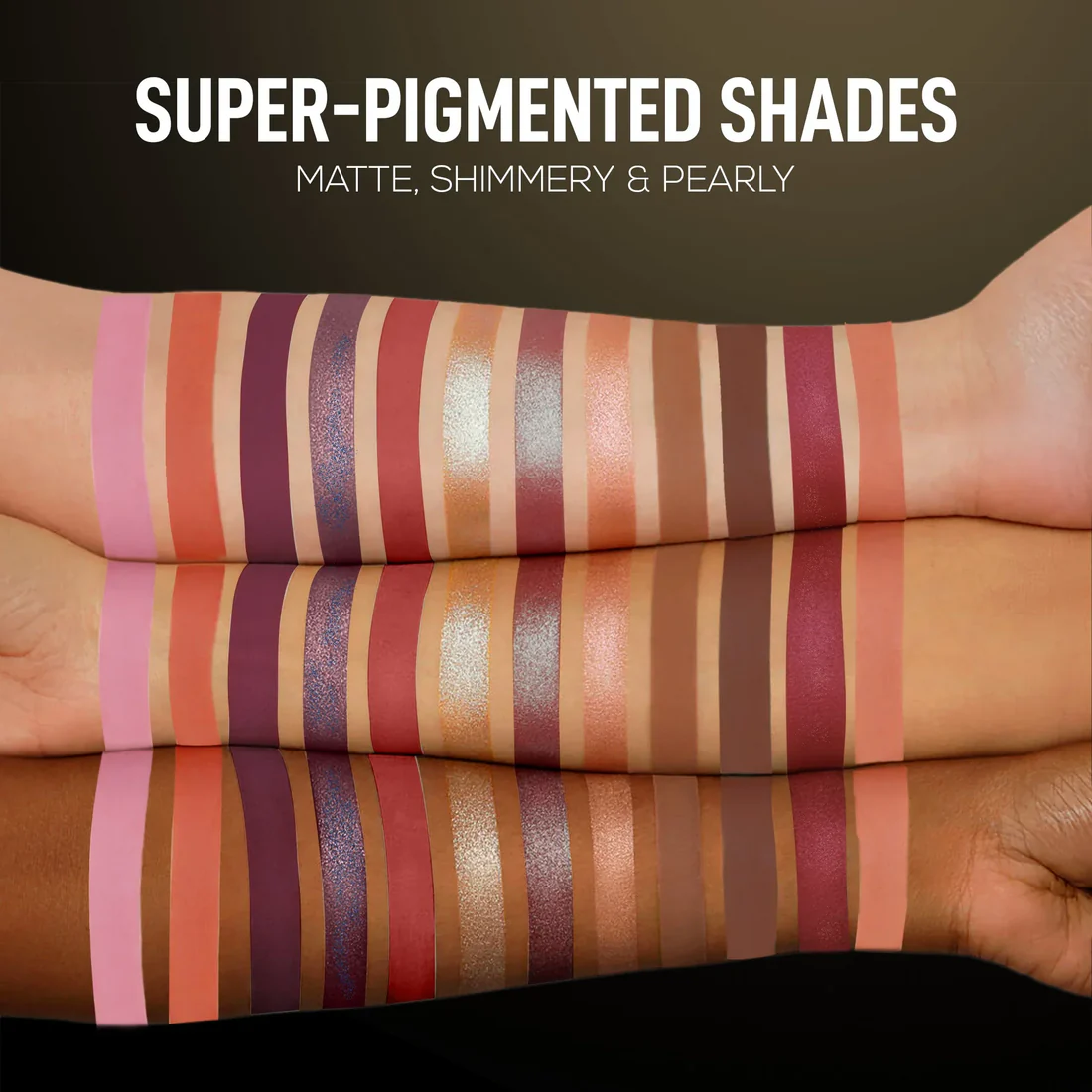 Start with a light shade as base from the eyeshadow palette. Apply a mid-tone shade and blend well. Follow up with a complimentary shimmer shade and flaunt your eyes.