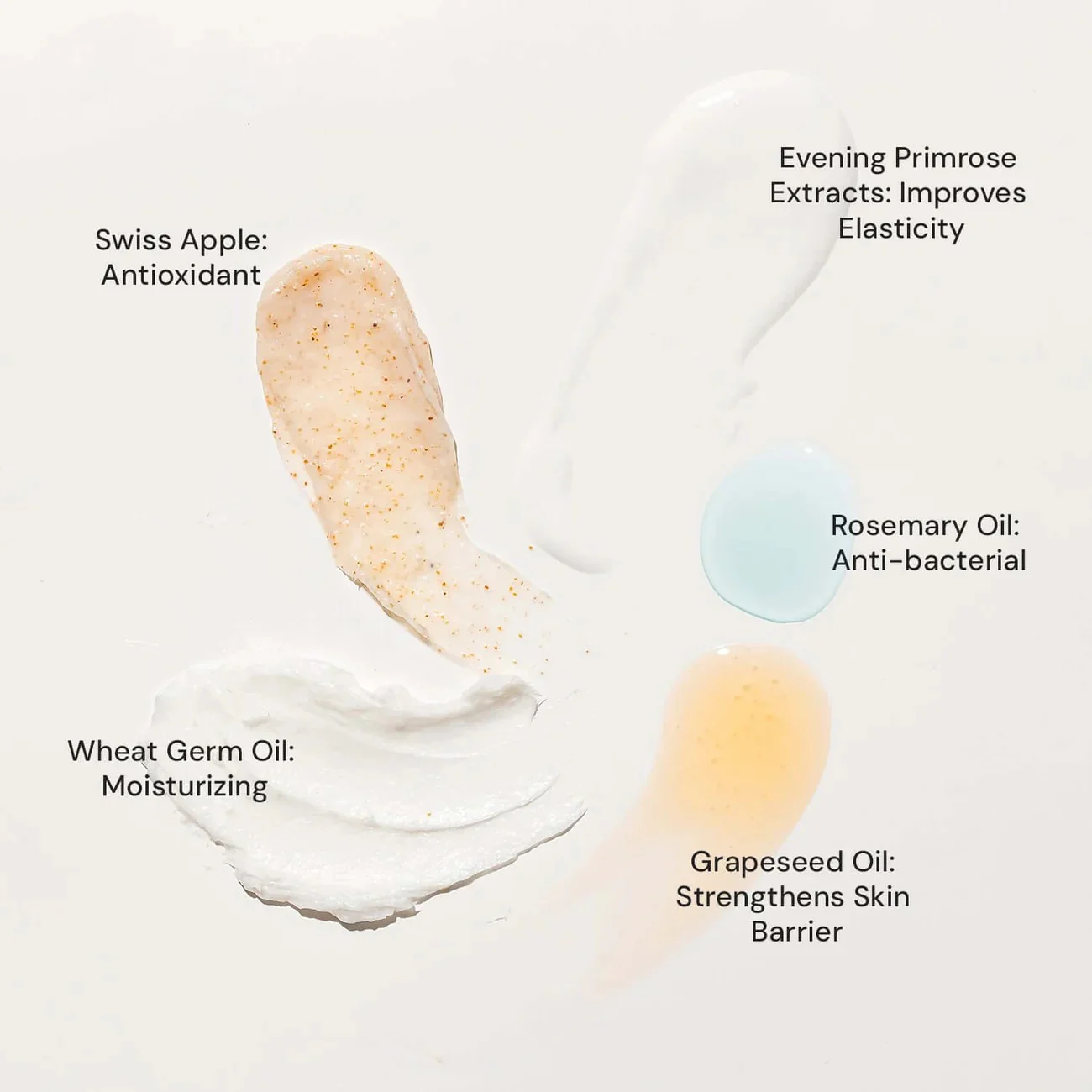 Step 2 - Exfoliator: Apply and leave on for 2-3 mins. Massage gently to remove dead skin cells, then wipe off.