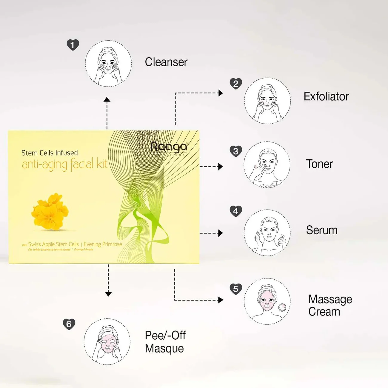 Step 1 - Cleanser: Apply to face and neck, massage in circular motions for 3-5 mins. Wipe off with a moist towel.