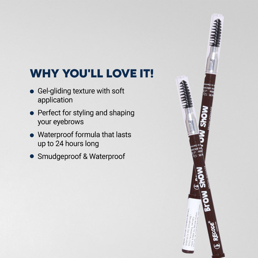 - Use the spoolie brush on the opposite end to gently blend the product through your brows.