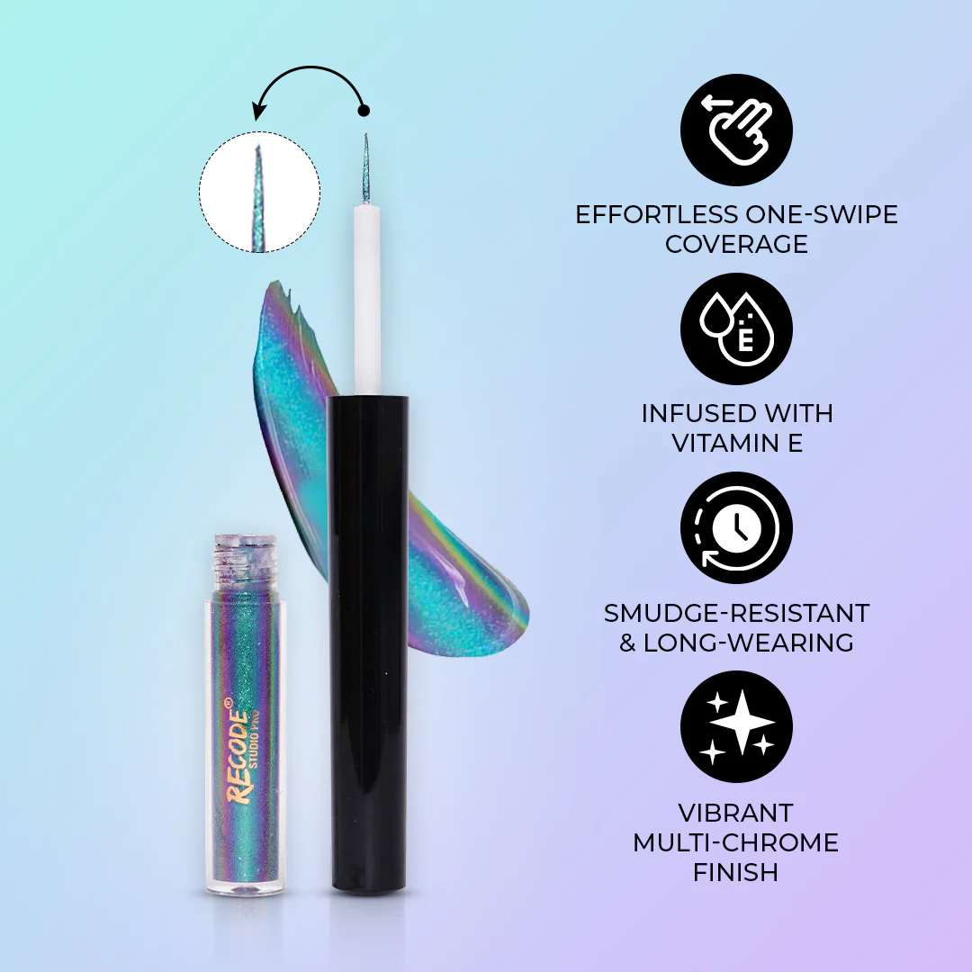- Apply the holographic liner: Draw a second line directly on top of the base liner. You can make this line thin for a subtle shimmer or thicker for a more dramatic, high-impact look.