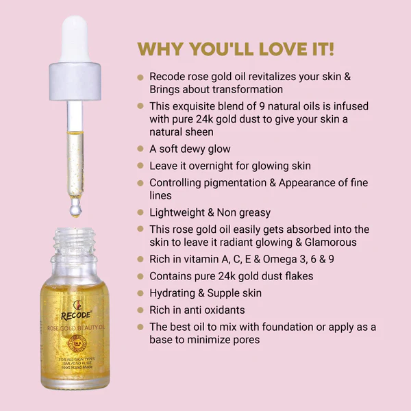 Whether you need to brighten your skin or lightly moisturize it or want to highlight it, this beauty oil serves all. The Rose Gold Beauty Oil is a completely organic and natural beauty item and does an all-natural charm on the skin to offer your face that tender glow. Daily usage of this oil can enable you to get clear skin that glows with health. So, log in to the Recode Studio's website and buy this beauty oil. Recode's Rose Gold Oil for the face will reawaken your skin and bring amazing changes.