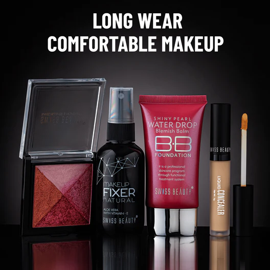 - Apply 1-2 pumps of Swiss Beauty's Blemish Balm Foundation to the back of your hand. Using a makeup brush or your fingers, dab it and gently blend it with circular movements evenly across the face, neck and decolletage for complexion perfection!
