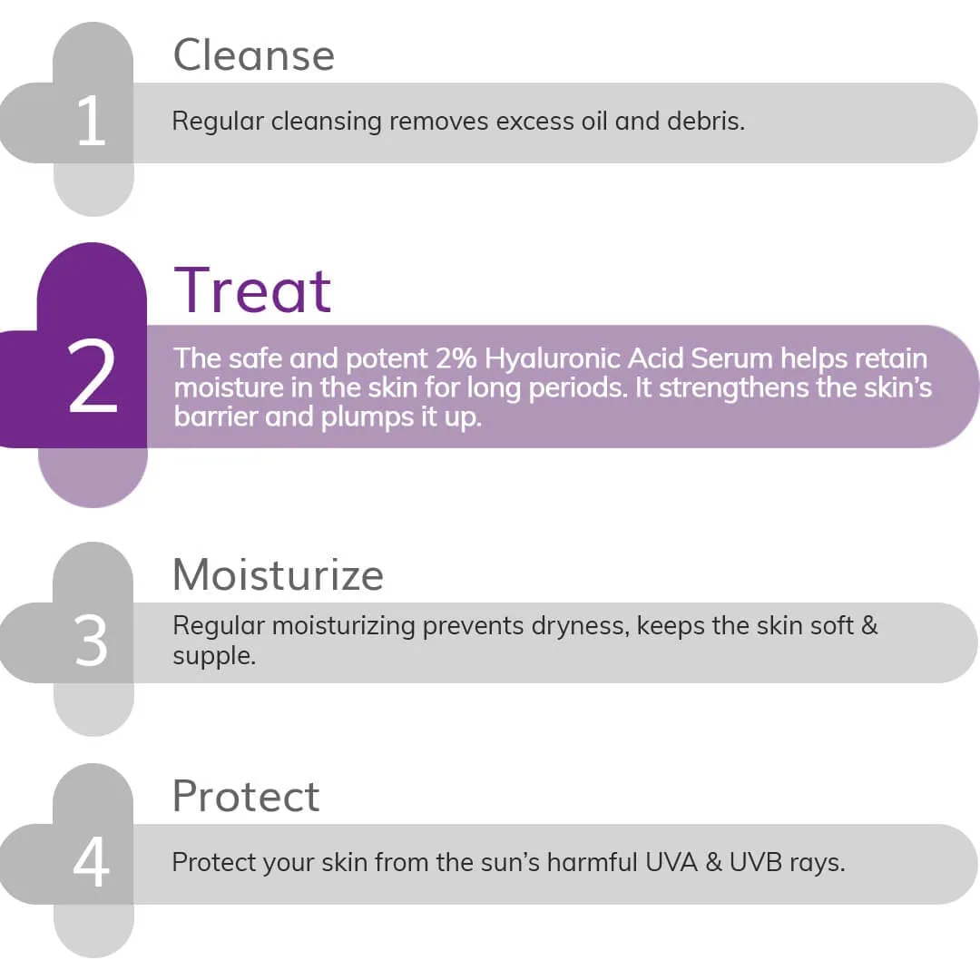 The 2% concentration of Hyaluronic Acid makes this serum ultra-light which in turn helps in easy absorption.