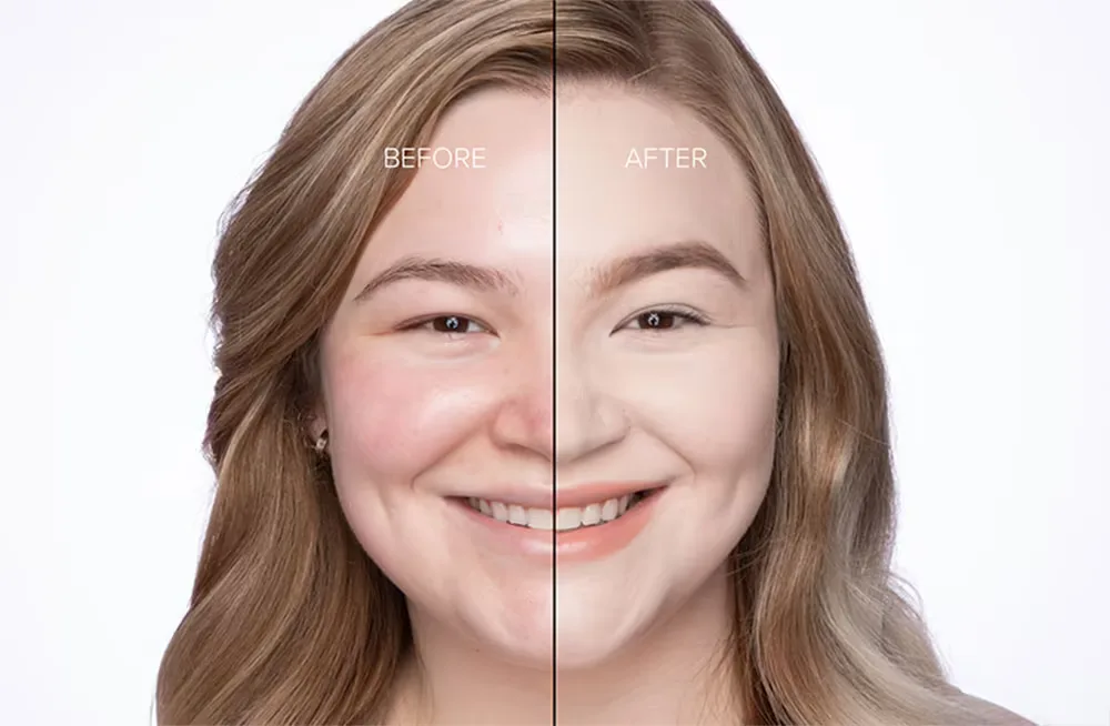 - Using the Mr. Perfect Foundation Brush, a sponge, or fingers, blend from the center of the face moving outwards and down.- Repeat for more coverage.