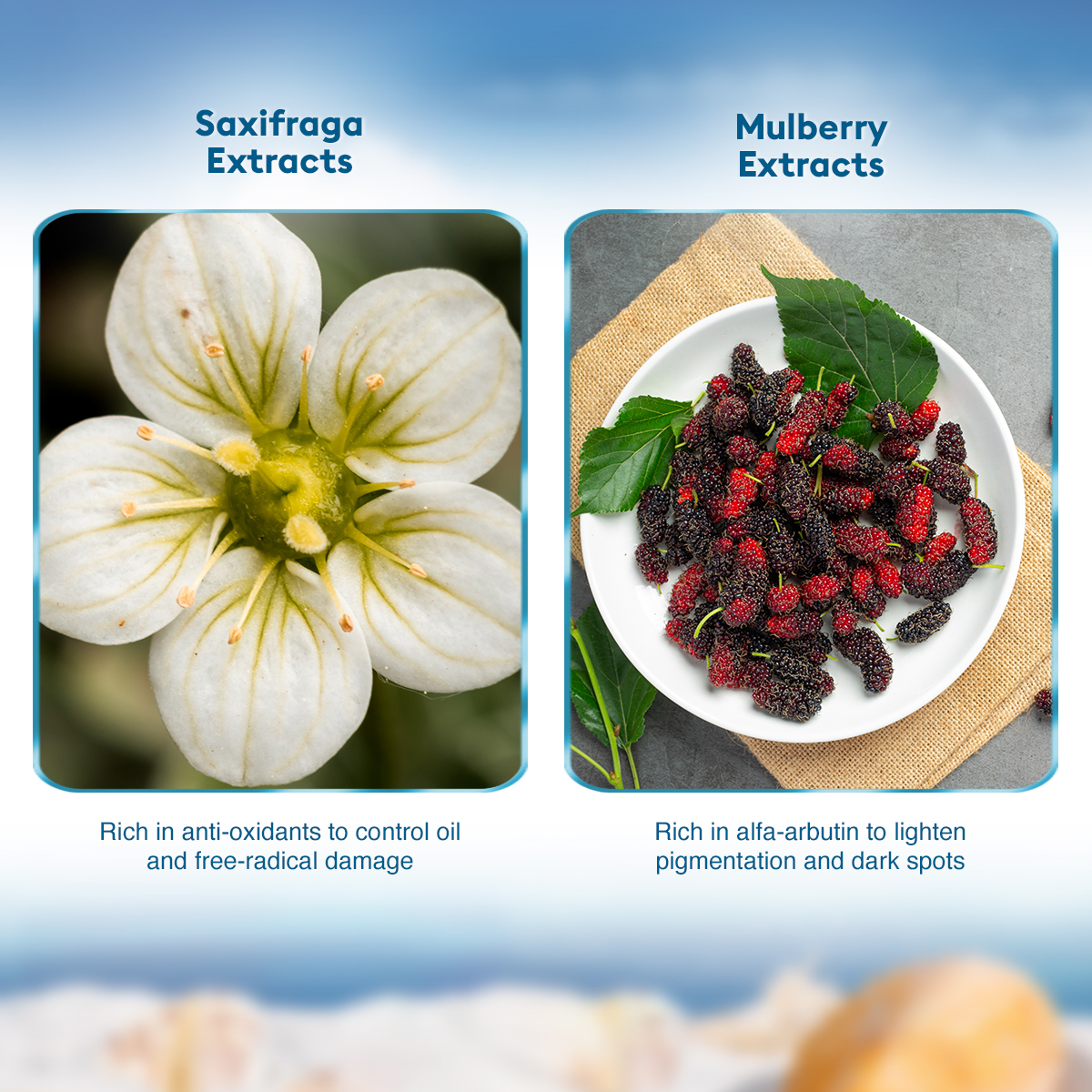 - Contains Ceramide, Niacinamide, Vitamin E and extracts of Olive, Grape, Saxifraga, Mulberry root, Scutellaria, Carrot, Aloe vera and Cucumber.